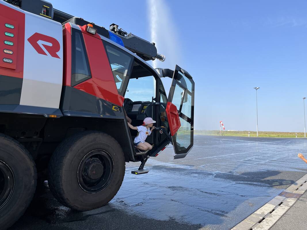Als Highlight bieten wir Ihnen zu Ihrer Airport Tour eine Vorführung des Vorfeldlöschfahrzeuges „Panther“ vor der Feuerwache West an. Dieser beeindruckende Zwischenstopp wird mit einem Gruppenfoto davor festgehalten.