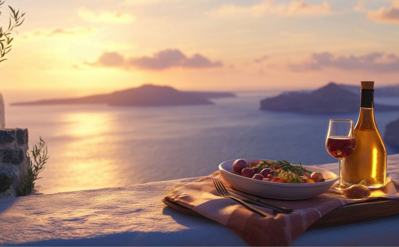 Unser Tipp: Genießen Sie ein Abendessen mit Caldera-Blick in Oia oder Imerovigli – besonders stimmungsvoll bei Sonnenuntergang.