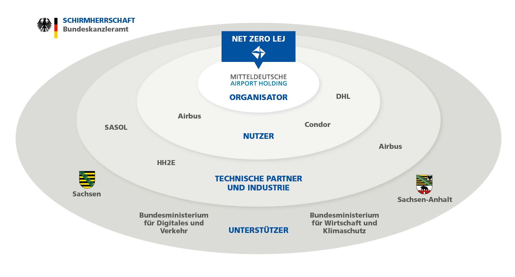 Um die Produktion in industriellem Umfang aufzubauen, braucht es Expertise, Flächen, SAF-Produzenten und SAF-Nutzer im Passagier- und Luftfrachtverkehr. In der Region rings um den Flughafen Leipzig/Halle sind all diese Voraussetzungen erfüllt. Ziel ist es, im Rahmen des Projektes NetZeroLEJ innerhalb der nächsten fünf Jahre Anlagen, Vertriebs- und Nutzungsstrukturen sowie Geschäftsmodelle aufzubauen, die den größtmöglichen Einsatz von SAF ermöglichen – in der Region und im Flugverkehr in ganz Deutschland.