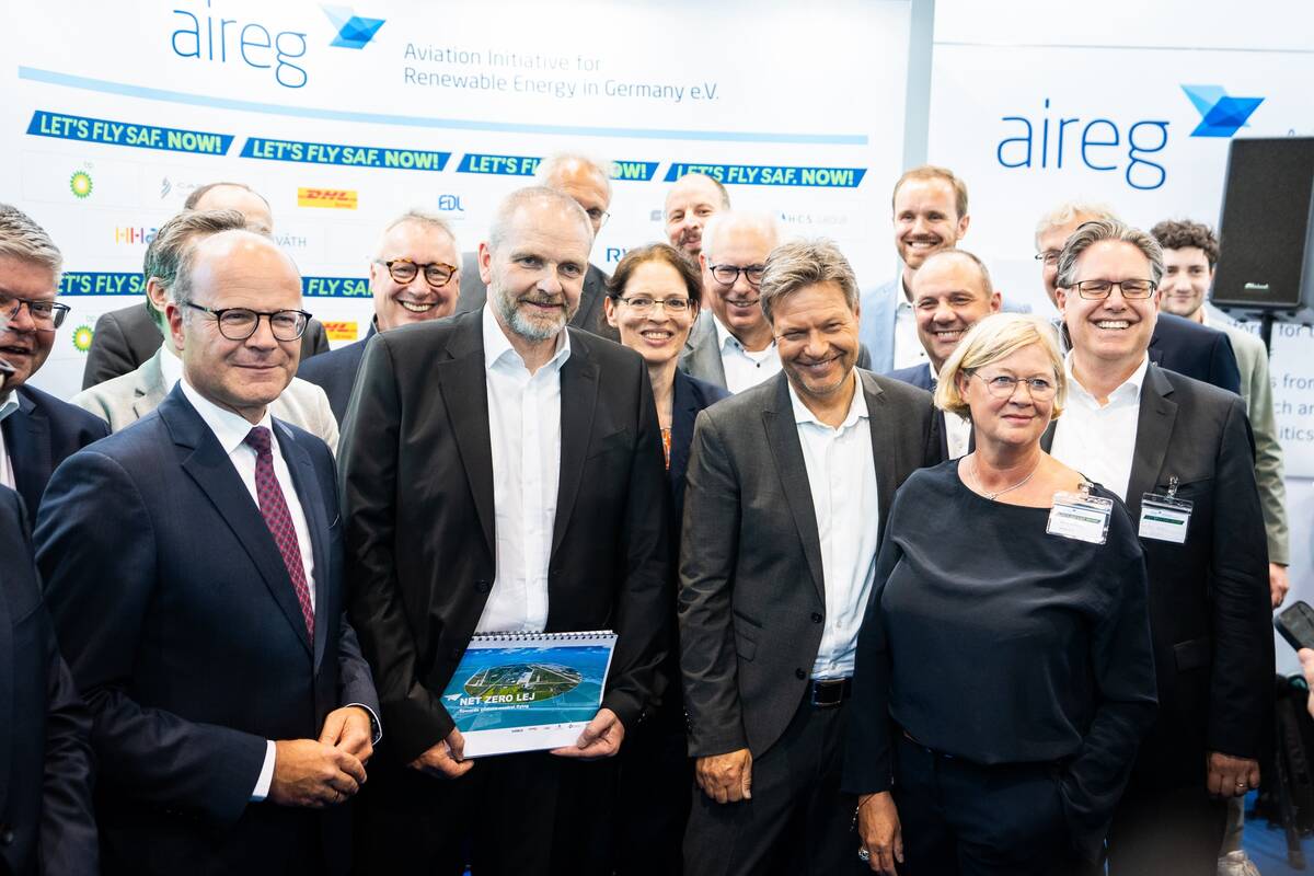 Die Bundesminister Volker Wissing und Robert Habeck besuchten das Projekt auf der ILA und tauschten sich über die aktuellen Entwicklungen, Herausforderungen und Chancen der SAF-Produktion in Deutschland aus.